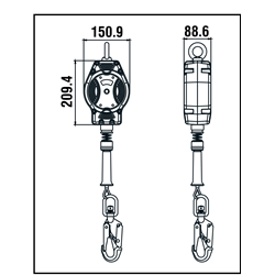 - Wirbelhaken und Verbindungselement FA 50 225 23B zum Anschluss an den Verankerungspunkt.