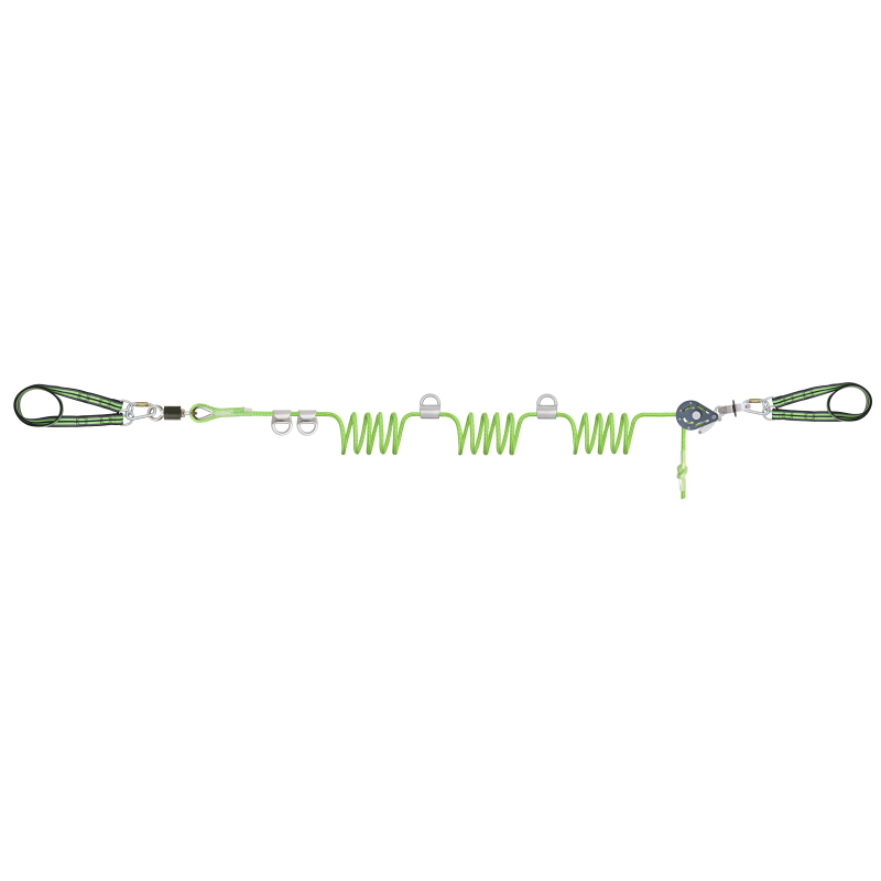 - Kernmantle rope (16 mm diam.) equipped with specially designed tensioner that allows tensioning of lifeline between the two supports.