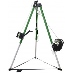 - With two mounted pulleys at the head of the Tripod in the extension of the main leg for passing a cable
