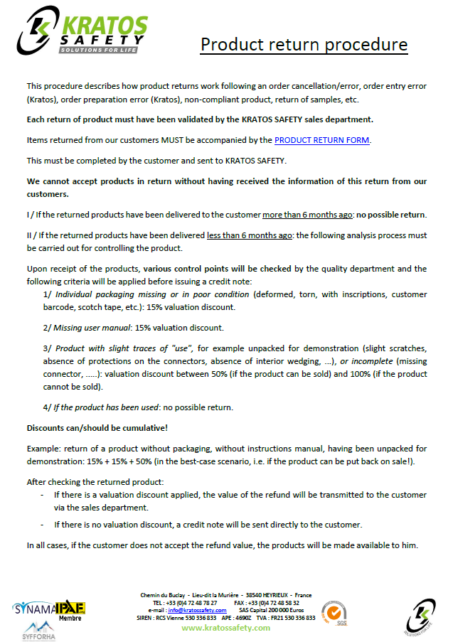 Product return procedure