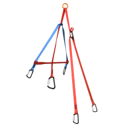 • 2 strands of the blue strap 1 for connection to the stretcher's blue strap B rings. These are held apart by a reinforced red horizontal strap;