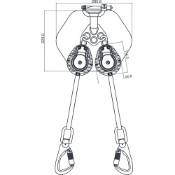 Connectores incluidos: 1 mosquetón de acero de doble acción FA 20 502 00A, y dos Mosquetones de aluminio de bloqueo automático para andamios FA 50 218 60.