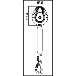 Proporcionado con un eslabón giratorio y un mosquetón FA 50 231 22 para conexión al punto de anclaje, y un mosquetón bloqueo automático ¼ de vuelta con eslabón giratorio FA 50 221 17 para conexión al punto de enganche del arnés.
