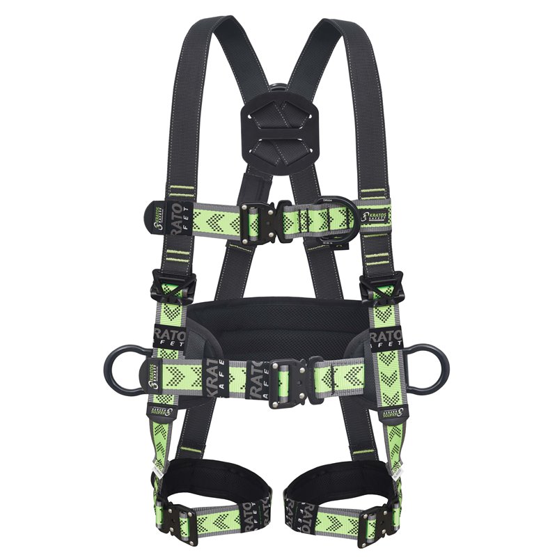 Puntos fuertes - Etiqueta indicador de caída en las cintas delanteras de los muslos y en la cinta dorsal. Las cintas de los hombros están equipadas con hebillas de ajuste (ajuste hacia abajo). Las cintas de los muslos, la cinta esternal y la del cinturón están equipadas con hebillas automáticas.