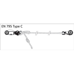 También puede utilizarse como eslinga de anclaje (EN 795:2012 Tipo B) rodeando una estructura, o como línea de vida temporal (EN 795:2012 Tipo C) estirándola en línea recta entre dos puntos de anclaje (EN 795) utilizando los dos conectores incluidos.