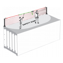 - À chaque extrémité de la ligne de vie se trouvent 2 m de cordage de couleur rouge, ayant pour but d'empêcher l'accès aux zones de danger (extrémités du container).