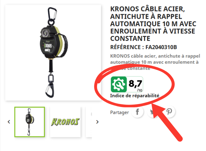 Kratos Safety s’engage à communiquer un indice de réparabilité à ses clients.