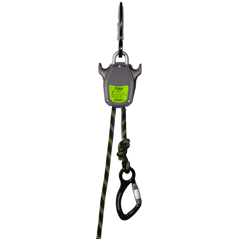 - FA 70 109 98 : Estremità della corda alla lunghezza desiderata con 2 "nodi a otto" e connettore doppia azione con bloccaggio automatico.