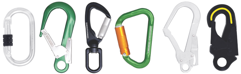 Moschettone in acciaio con bloccaggio automatico doppia azione con gancio a snodo girevole e indicatore di caduta