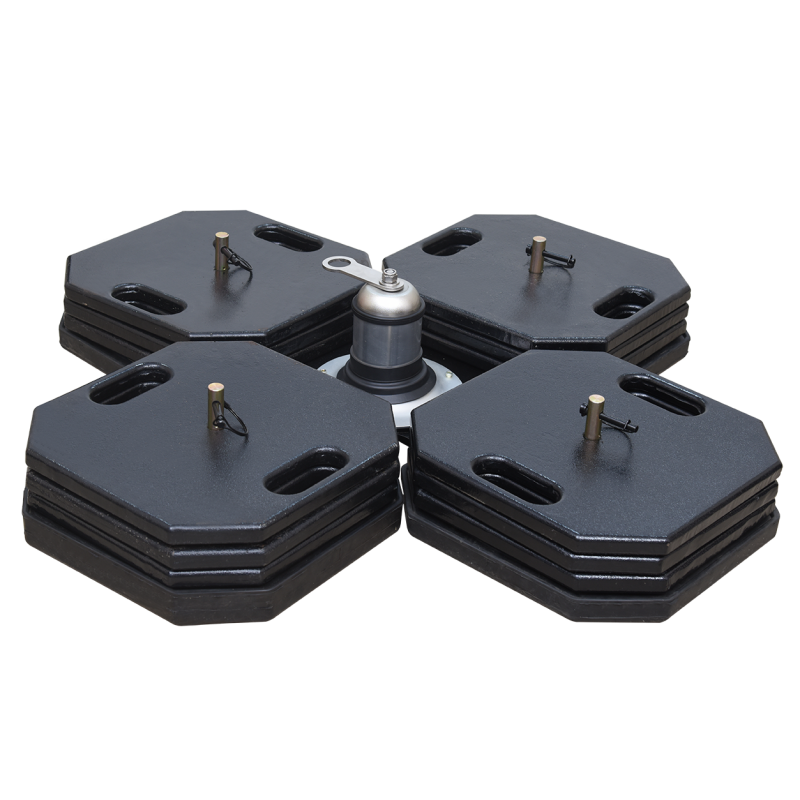 Comprende 4 piastre inferiori sovrastampate e 12 piastre superiori, ciascuna del peso di 25 kg.