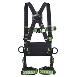 Punti forti - Etichette indicatore di caduta su cinghia cosce anteriore e cinghia dorsale. Le cinghie delle spalle sono dotate di fibbie di regolazione (regolazione verso il basso). Le cinghie dei cosciali, la cinghia sternale e la cintura sono dotate di fibbie automatiche.